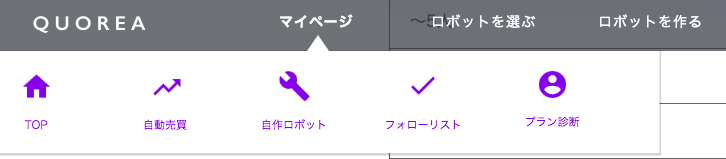 QUOREA(クオレア)にログインして表示されるページ上部のメニューで、ロボットを選ぶを選択します。