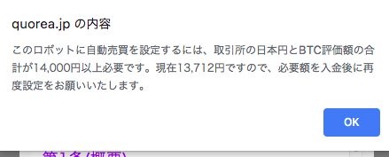 ロボットの自動売買をONにしたときに、このような表示が出る場合があります。