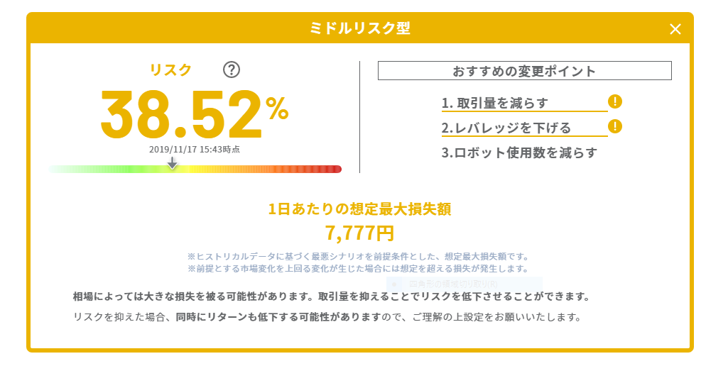こうして提供される情報を勉強することで、ロボットの取引数量やレバレッジの設定など上級者向けの設定にも挑戦して、利益が出来るように工夫することも出来ます。
