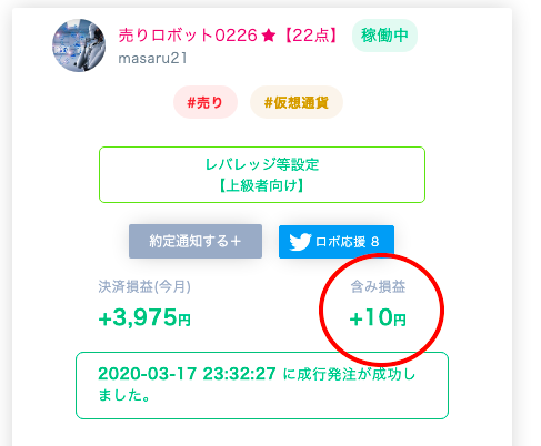 私は、毎日のように、ロボットの含み損益を確認しています。