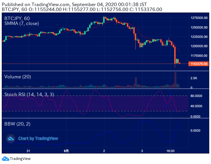 今、急激にビットコイン (BTC)の相場が、下落しています。