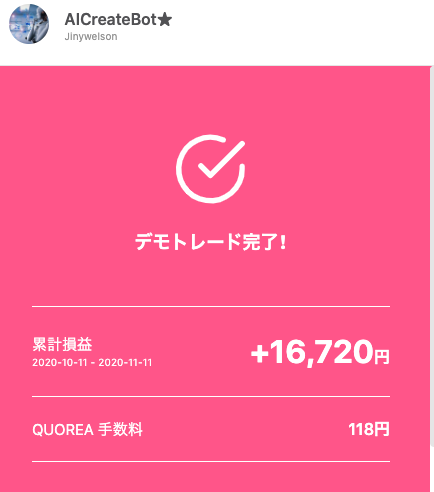 実際に、QUOREAで自動売買を行う際は、手数料が発生します。