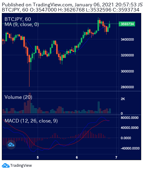 先ほどビットコインの価格を確認したところ1BTCが、350万円前後でした。