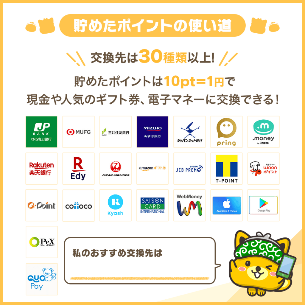ポイントサイトのポイントを貯めている方は、このページの情報も活用されるのも良いかもしれないです。